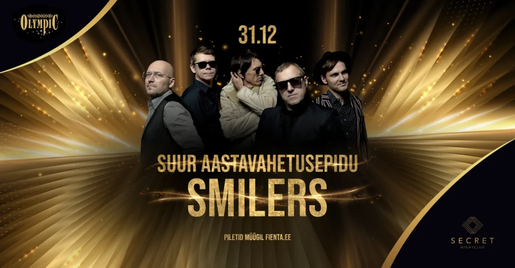 Suur uusaastapidu koos populaarse Eesti bändiga SMILERS. Palju live-muusikat, energiat ja hitte, mis sobivad suurele seltskonnale ja neile, kes tahavad „päris kontserdi“ fiilingut.